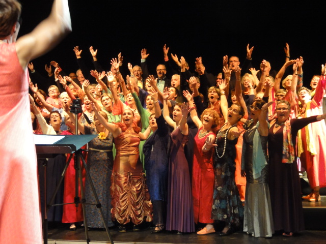 Plusieurs fois par an, nous chantons en public lors de concerts ou spectacles, seuls ou avec d’autres formations musicales.